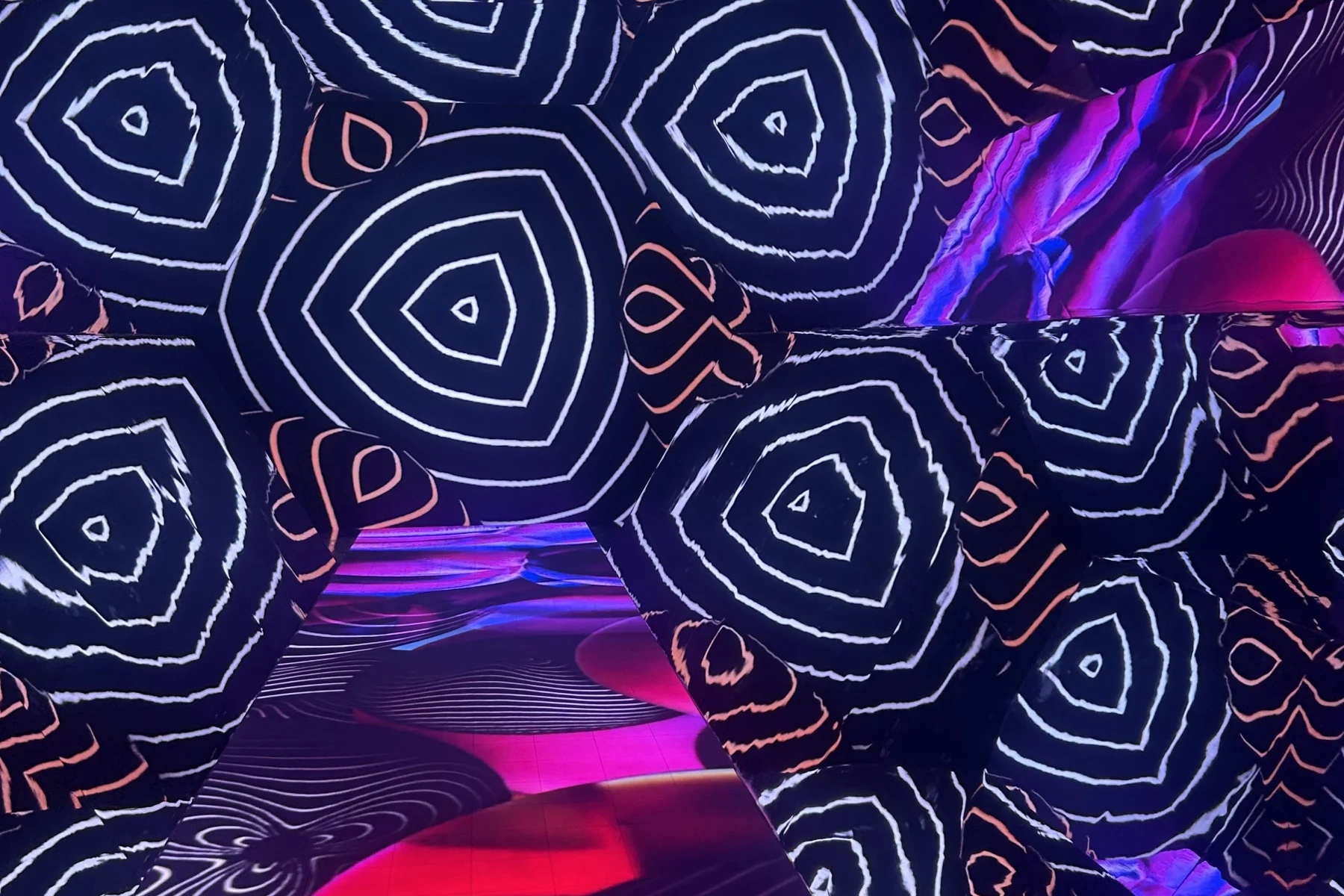Stap in een levende caleidoscoop waar patronen draaien, kleuren dansen en elke stap de muren om je heen tot leven laat komen.